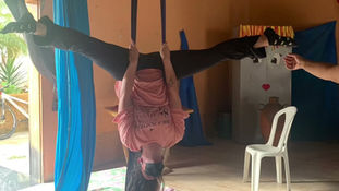 Performance audiovisual em Tecido Acrobático. A artista trabalha o arquétipo da borboleta através da dança aérea e recitação de poemas, como do poeta Manoel de Barros.